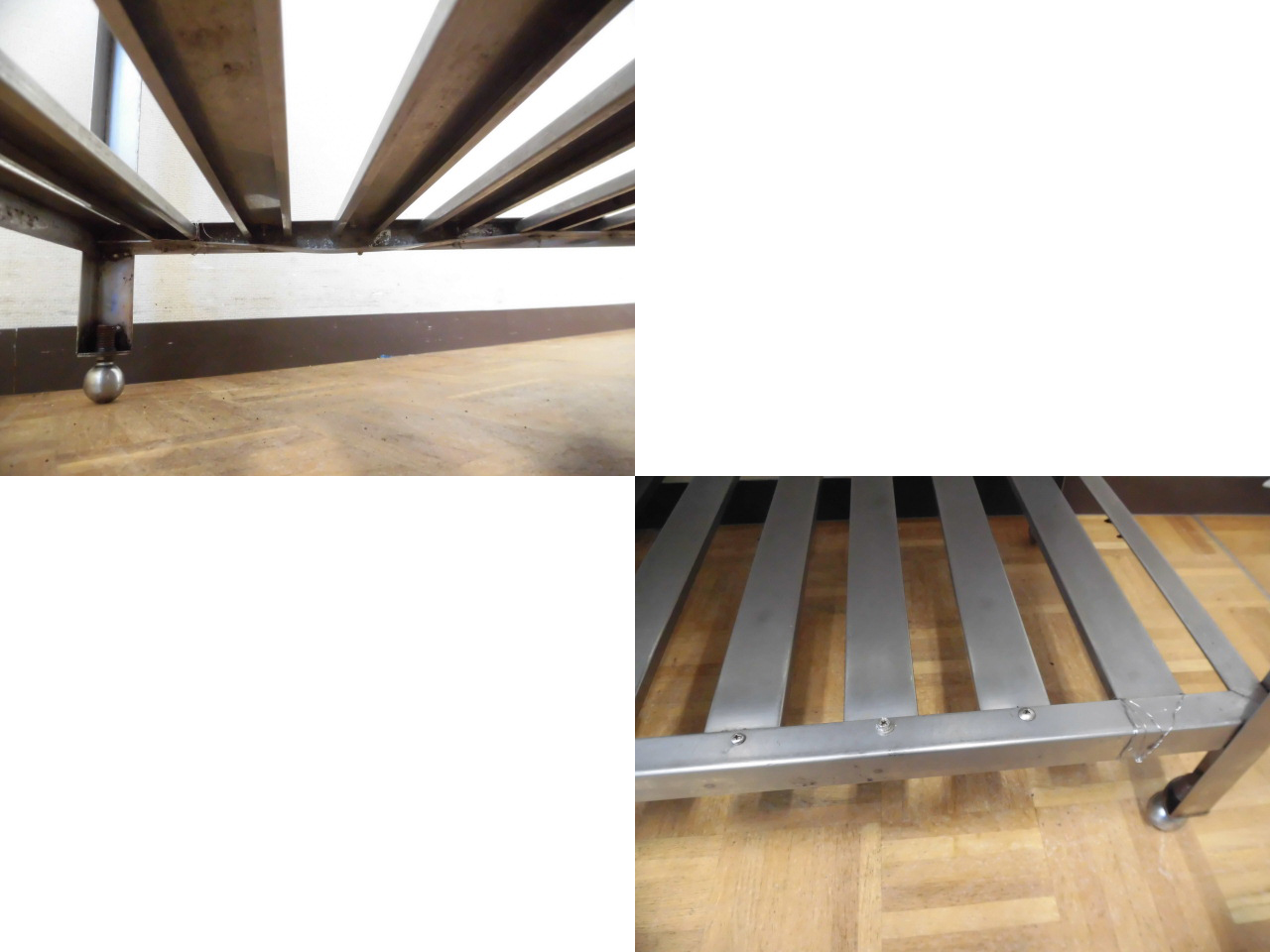 ・スノコ中央部にゆがみ有り、スノコの一部溶接外れの為、ビス、ワイヤー止めされています。