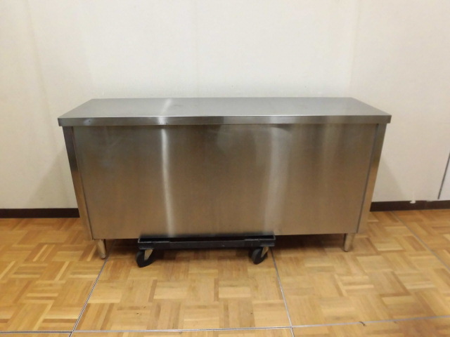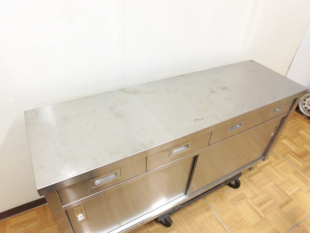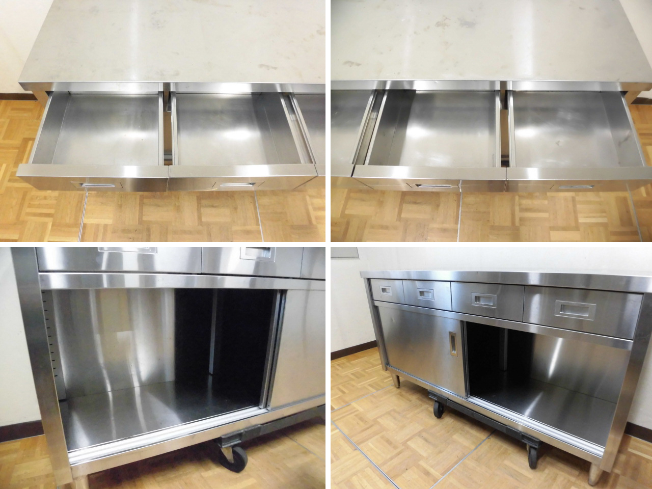 中古厨房 業務用 引き出し付 食器庫 ステンレス W1500×D450×H800mm 調整脚+20mm スライド扉 店舗