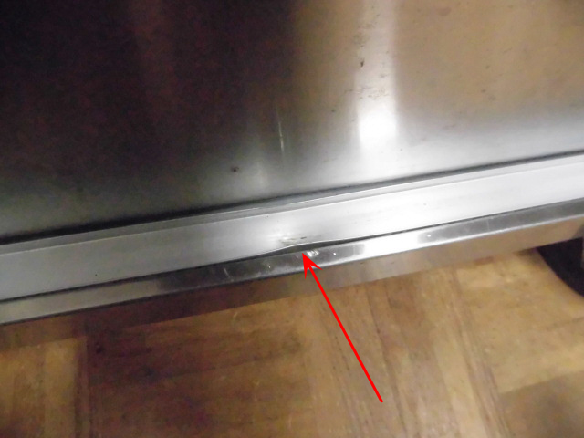 ・スライド扉(手前側)のレールにゆがみがあり、開閉の際引っ掛かりがあります。