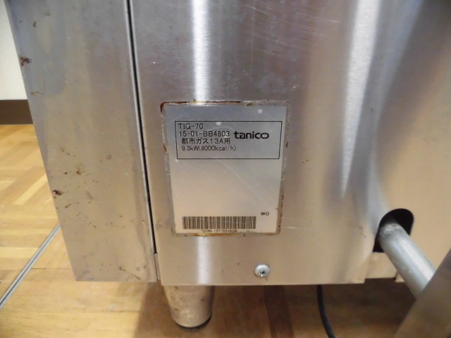 中古厨房 タニコー 業務用 ガス 赤外線 グリラー 上火式焼物器 TIG-70 都市ガス 圧電点火方式 バーナー3本 昇降レバー式