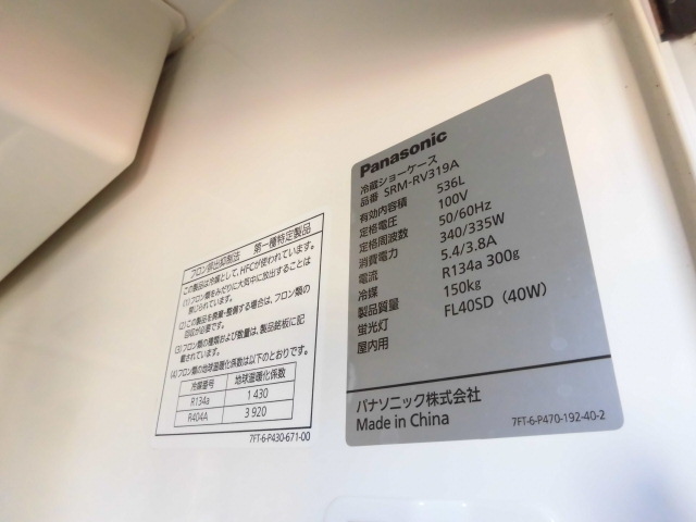 中古厨房 パナソニック 業務用 リーチイン 冷蔵ショーケース SRM-RV319A 100V 536L 大ビン232本 中ビン334本 庫内灯 W900×D640×H1900mm
