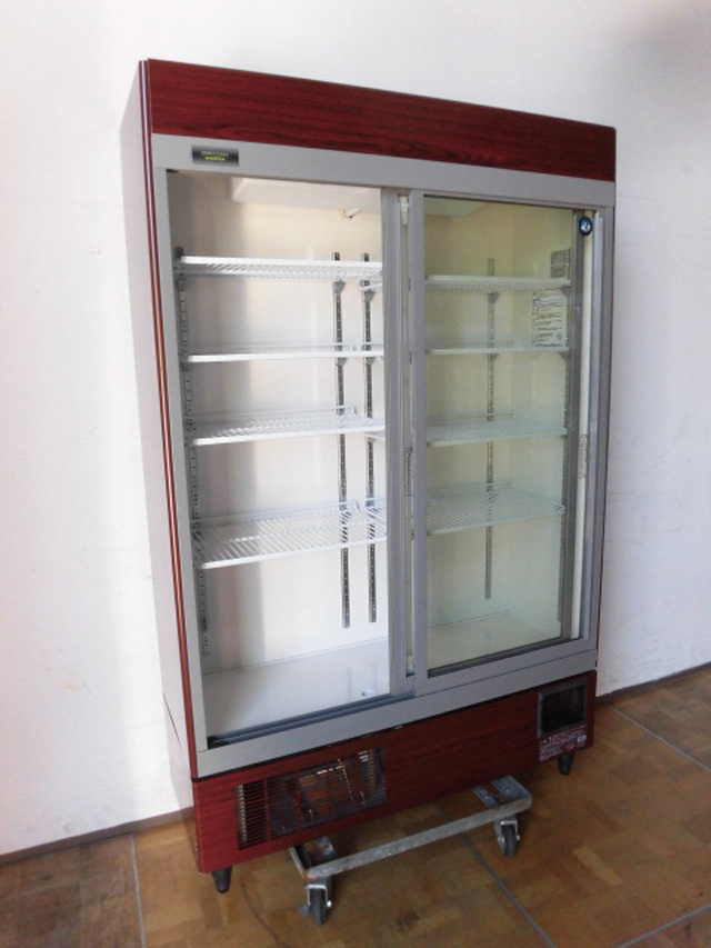 中古厨房 ホシザキ 業務用 リーチイン 冷蔵ショーケース RSC-120DT-B 100V 463L 中瓶249本 大瓶236本 インバーター 照明 木目調 2017年製