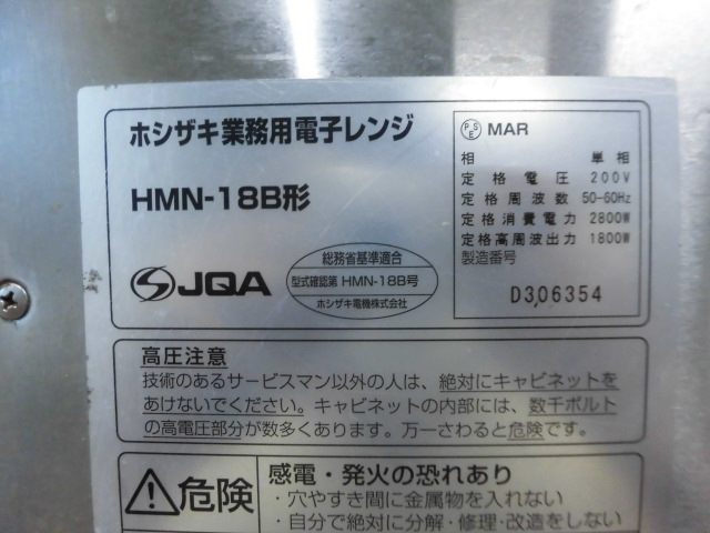 中古厨房 ホシザキ 業務用 卓上 電子レンジ HMN-18B 単相 200V 18L 最大1800W メモリー数30 コンビニ W422×D476×H337mm 庫内灯
