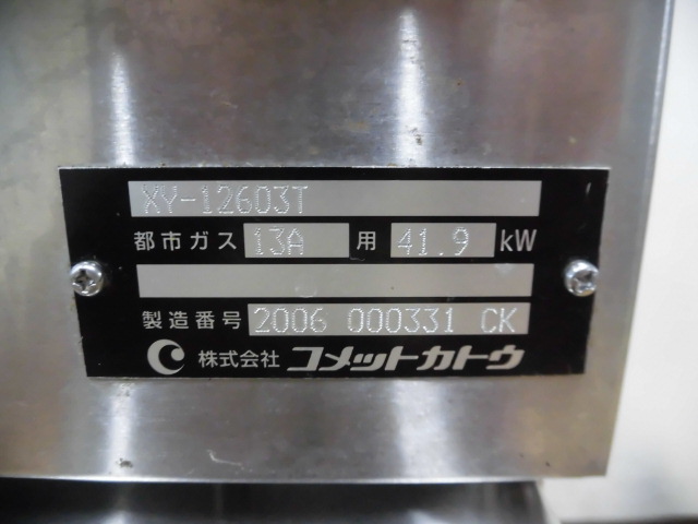 中古厨房 コメットカトウ 業務用 ガステーブル XY-12603T 3口 コンロ 都市ガス 圧電式 W1200×D600×H780(BG930)mm 店舗 飲食店 2020年製