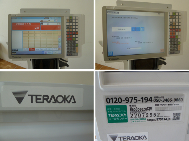中古厨房 寺岡精工 業務用 タワータイプ POSレジスター WebSpeeza CIV 100V ハンドスキャナー カウンター 大型画面 2022年 現状渡し