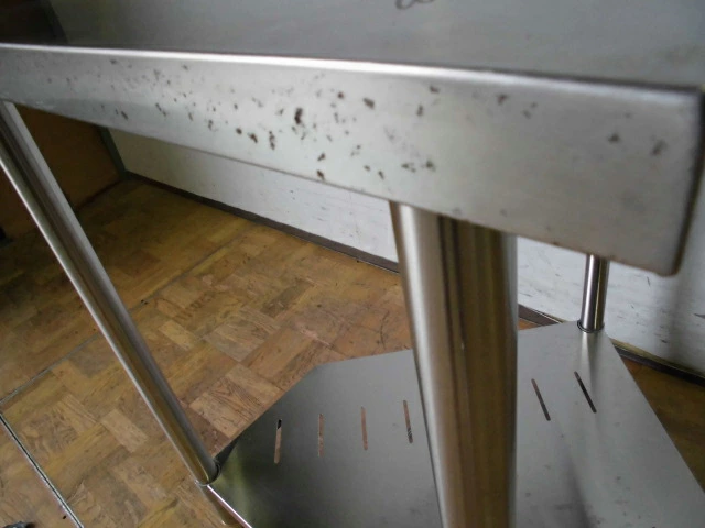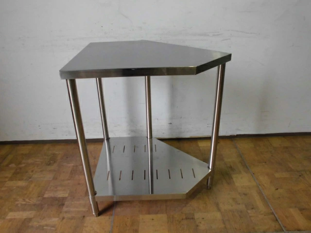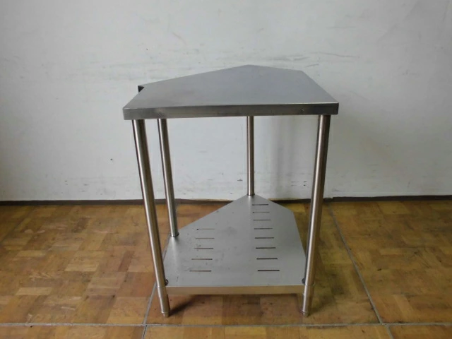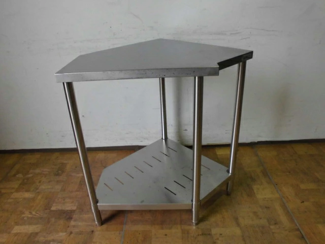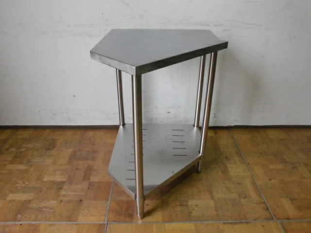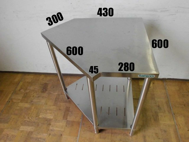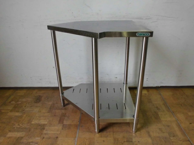 中古厨房 業務用 タニコー 変型形 作業台 調理場 ステンレス W840×D420×H840mm 調節脚:+40mm 店舗 下段棚付き