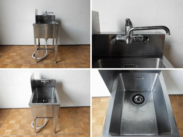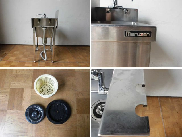 中古厨房 業務用 マルゼン 1槽シンク 流し台 ステンレス W470×D750×H835(BG985)mm 調整脚+15mm 蛇口1本 深さ240mm 店舗 飲食店 キッチン 調理場