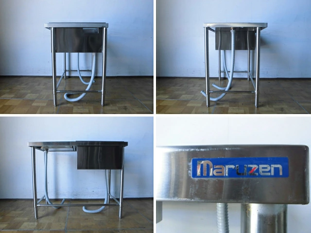 中古厨房 マルゼン 業務用 ステンレス 作業台 アイスビン付 サーバー台 W1000×D600×H840mm 調整脚+30mm 氷入れ ドリンクバー A