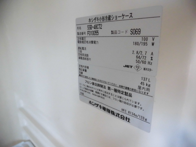 中古厨房 ホシザキ 業務用 冷蔵ショーケース SSB-48CT2 100V 137L 2~12℃ 中瓶75/大瓶69本 ビールケース スライド扉 キャスター