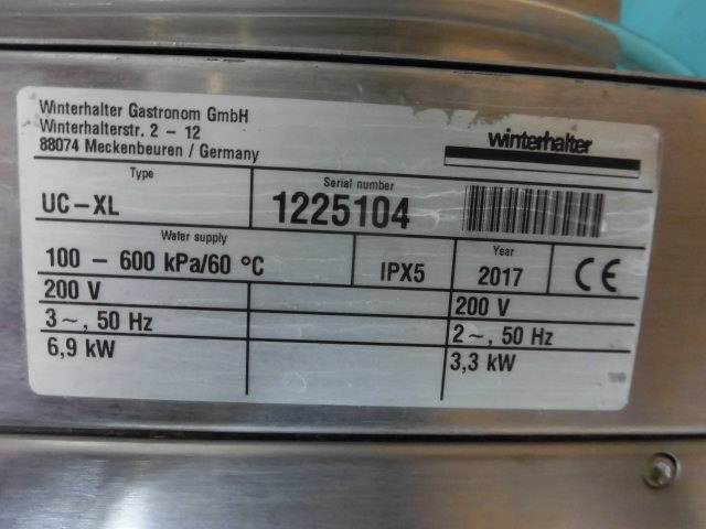 中古厨房 業務用 ウィンターハルター 食器洗浄機 食洗機 UC-XL 単相 200V 50Hz専用 アンダーカウンター W600×D640×H810mm 2017年製