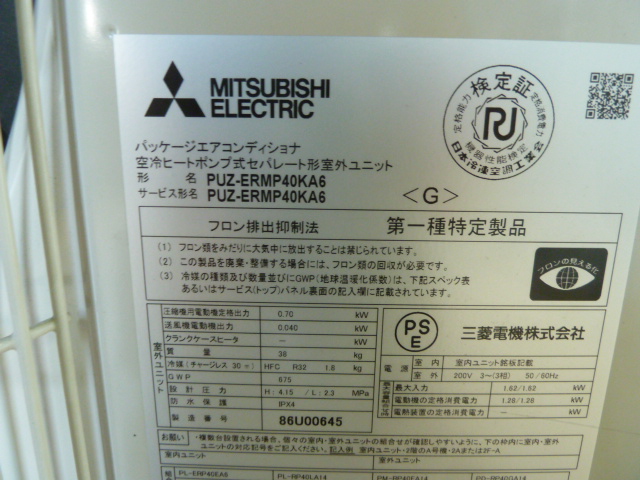 三菱電機 業務用 エアコン 壁掛形 PKZ-ERMP40KLR 1.5馬力 三相200V スリムERシリーズ 標準省エネ シングル 無線リモコン (1)