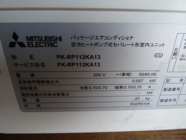 ・能力:4馬力 冷房10.0kW/暖房11.2kW
