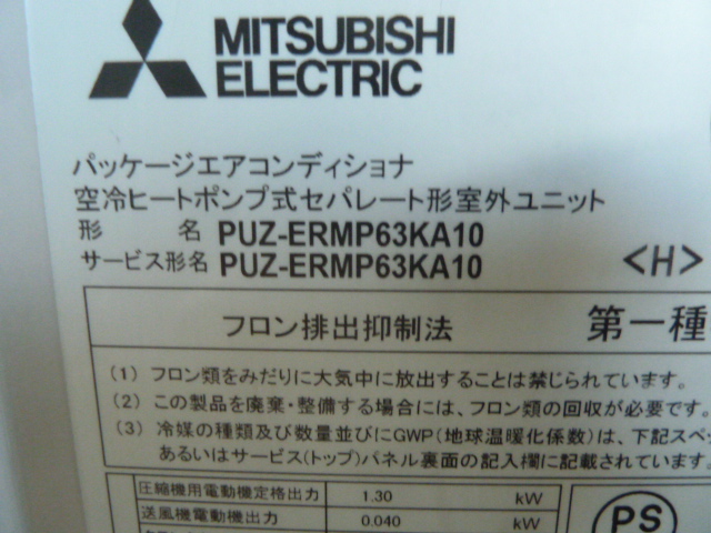 ・能力:2.5馬力相当 冷房5.6kW/暖房6.3kW