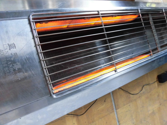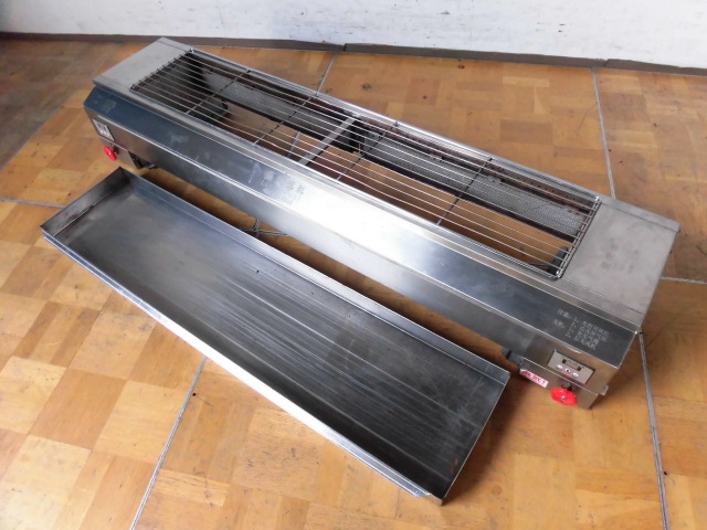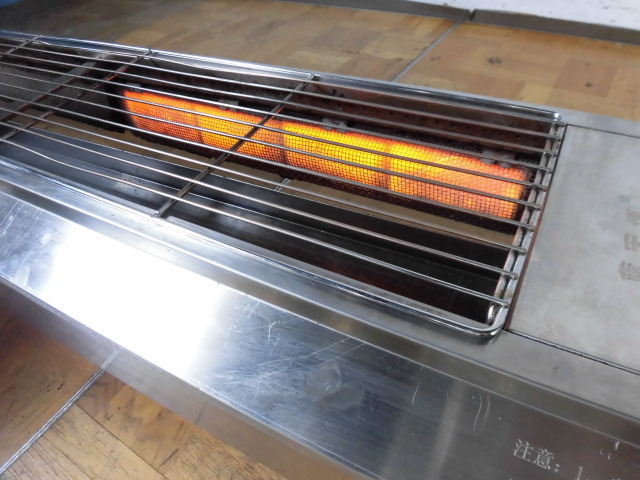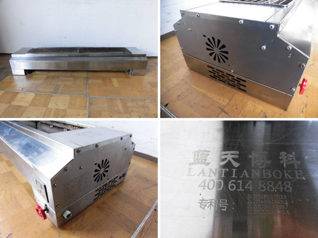 中古厨房 LANTIANBOKE 業務用 卓上 下火式 グリラー 焼き台 藍天博科 バーナー2本 都市ガス 焼き鳥 串焼き 100V 串付き W1480×D410×H230