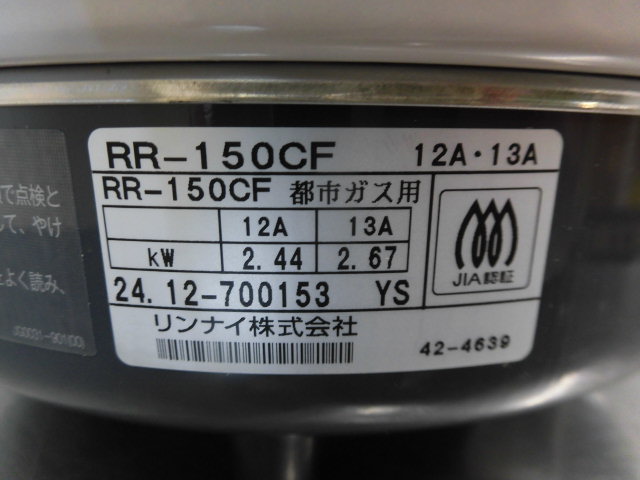 未使用 業務用 リンナイ ガス炊飯器 RR-150CF 都市ガス 1.5升炊き 3L 卓上 普及タイプ コンパクト45シリーズ 取説付き 2024年製